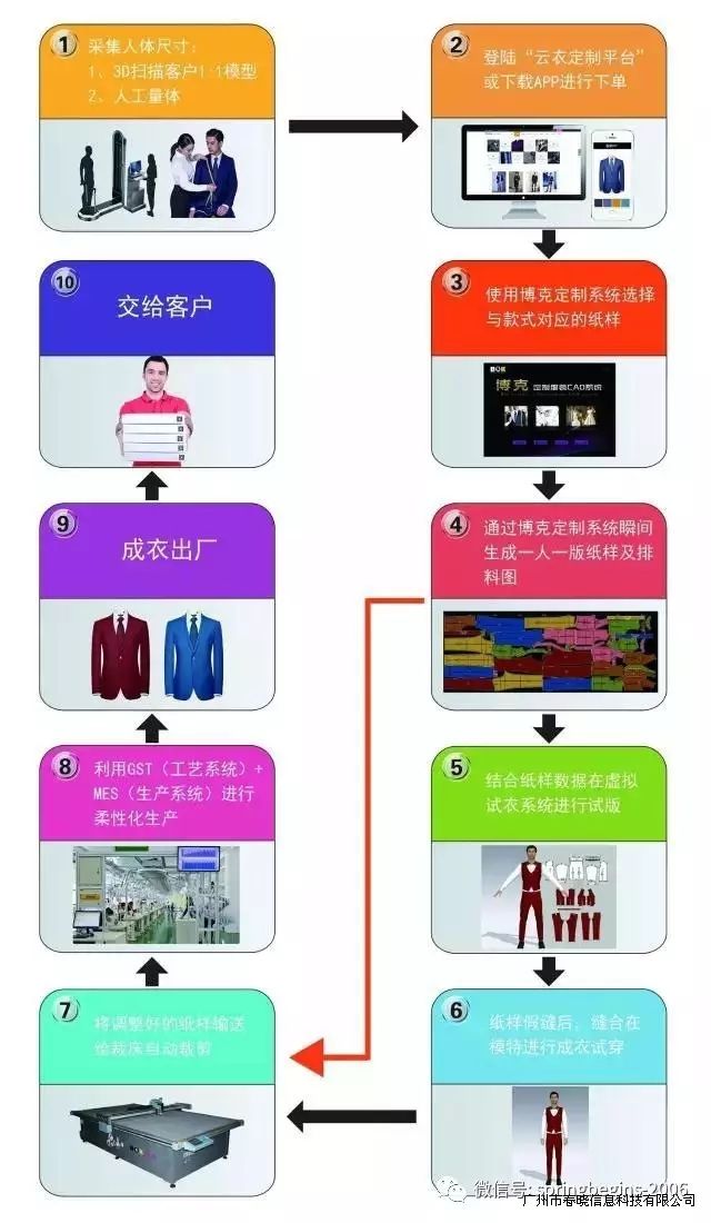 GST系統(tǒng)上承C2M平臺(tái),下接MES系統(tǒng)。通過人工智能技術(shù)與互聯(lián)網(wǎng)的結(jié)合,讓傳統(tǒng)服裝定制煥以新生。這一系列的智能技術(shù)集成在一起,即形成完整的整體解決方案,實(shí)現(xiàn)大規(guī)模的服裝定制。